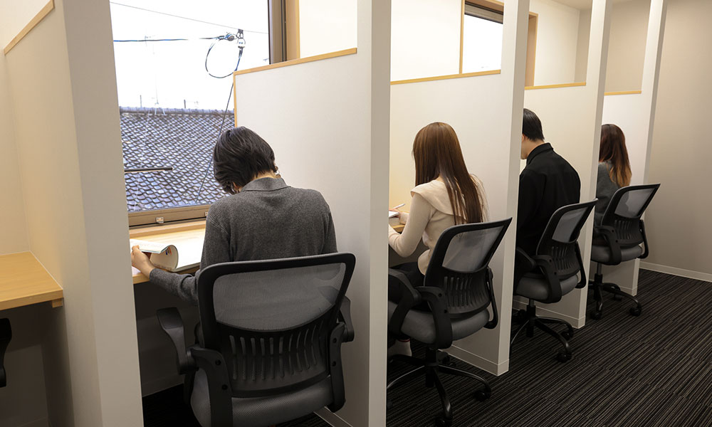 会員制の自習室で、PC利用区画も限定されており、静かで快適な学びの空間を提供します。自宅や、カフェ、図書館などではなかなか集中しにくい方も、目標をもって頑張る他会員から刺激を受けながら、学びを追求することができます。