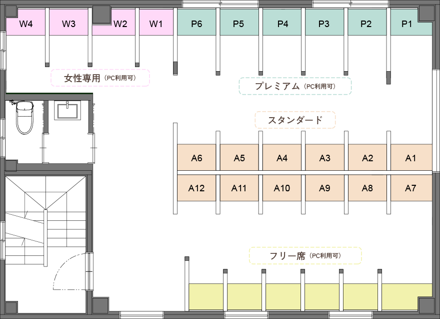 ※ PCの使用はPC席のみとなります