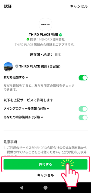 2:LINE公式アカウントからも、LINEミニアプリの認証画面より会員登録いただけます。